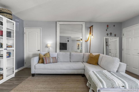 Charming 2-Bedroom, 1.5-Bath Condo in Prime San Diego Location. Welcome to your ideal urban retreat! This beautifully upgraded 2-bedroom, 1.5-bathroom condo offers 853 sq ft of cozy, modern living space with a thoughtfully designed open floor plan. Located on the convenient 1st floor, it’s perfect for easy access and comfort. Step inside to discover stunning new flooring and a cozy modern kitchen that has been tastefully updated with contemporary finishes. Whether you’re entertaining or enjoying a quiet evening, the spacious living area flows seamlessly to the private, extended patio—ideal for relaxing outdoors or enjoying a cup of coffee. With ample storage space, this condo is as functional as it is stylish. The building offers a gated, secured entry for peace of mind, and the amenities include two heated pools, a well-equipped gym, and more. The location is truly everything! Just minutes from all major freeways and the beautiful San Diego beaches, you’ll have the best of both worlds. Walk to Starbucks, Target, and many more shops, markets, cafes, and dining options, or take a short drive to all the attractions that make San Diego so special. Whether you're looking for your first home, a low-maintenance retreat, or an investment opportunity, this move-in-ready condo offers both convenience and comfort in one of San Diego’s most desirable areas. Don’t miss your chance to live in a prime location—schedule a tour today.