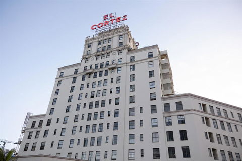 Unit has just been remodel and has fresh modern look! New vinyl flooring, baseboards, imperfect smooth texture walls, freshly painted, including kitchen cabinets! The one-bedroom, one-bath residence features soaring 9-foot windows that frame stunning views of the Balboa Park Tower. Beyond the elegant double-door entry, the bedroom offers a serene retreat and connects to a spacious, custom-designed walk-in closet. Comfort is enhanced by central heating and air conditioning, a Nest thermostat, and effortless elevator access. One convenient parking space is also included. Steeped in history, the iconic 1926 Spanish Colonial Revival El Cortez building delivers resort-style amenities within a welcoming, pet-friendly community known for its warm camaraderie. Residents enjoy a second-floor terrace with BBQ and lounge areas, a sparkling pool and spa, a fully equipped fitness center, secure bike storage, EV charging, underground parking, and attentive on-site management. Each floor provides community laundry; on the seventh level, only three residences share these facilities, ensuring convenience and privacy. Situated atop charming Cortez Hill, this home offers easy access to San Diego’s most beloved destinations — Balboa Park, Petco Park, Little Italy, the Gaslamp Quarter, Seaport Village, the harbor, and the airport — blending classic architecture with modern urban living. At El Cortez, you’re not just purchasing a home — you’re joining a living legacy. Discover elevated downtown living