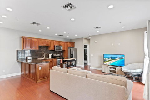 This 2 bedroom, 2 bath condo is a top floor end unit, is light and bright and in a gated community. This great find features cherry laminate flooring, granite countertops in the kitchen and bathrooms, Stainless Steel appliances, gas range, full size washer and dryer in closet on the balcony. Dual pane windows, recessed lighting throughout, central a/c and heating plus two assigned covered parking spaces. Centrally located near all major freeways - yet very quiet, minutes to downtown, beaches, shopping and schools. Just 1 block to the Linda Vista recreational center where there's basketball, soccer, tennis, racquet ball and much more. This home is a must see!!