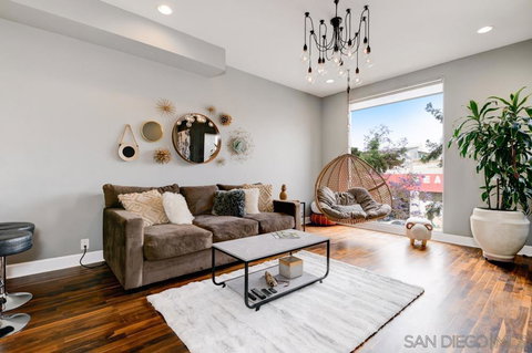 This sought after sophisticated 2 bed 2 bath condo with private parking garage located 2 blocks from Petco Park is a True Rare Find! A large Gallery window and the Master Bedroom Balcony allow natural light in while showing off amazing cityscape views. This homes location is right near wonderful eateries, bars, the Gaslamp district and right across from the new Target being built. This upscale unit has been designed with each room having a dedicated outdoor space with turf and weather proof flooring. The unit has remodeled bathrooms with modern fixtures, a large custom organized closet space and a secret lockable wine cellar and storage closet under the stairs. It is Smart Home configured with control access and security monitoring from your phone.