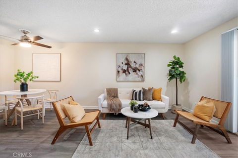 Move-in ready! 2-BR/2BA condo in the desirable Verano at La Jolla! Incredible location in the La Jolla Colony community featuring lush landscaping, friendly dog park, walking trails, and enjoy summer concerts. This immaculately upgraded Upper level unit features a Beautifully renovated kitchen with Quartz countertops, White shaker cabinets, and Stainless steel appliances including refrigerator with icemaker. The living space is spacious, light, bright and open with elegant Luxury Vinyl Plank Floors, recessed lighting, ceiling fan, and sliding glass door leading to nice size balcony with storage closet, perfect area to sit and relax. The primary bedroom includes a lighted walk-in closet and an en-suite remodeled bathroom with soaking tub & Porcelain wall tile. Recently remodeled second bathroom with Stunning Porcelain tile and soak bathtub. Additional highlights include dual pane windows, ceiling fans in both bedrooms, full size washer and dryer and 2 assigned underground gated parking spaces side by side.