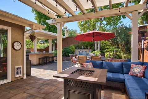 New roof, owned Solar, entertainers backyard! Welcome to this gorgeous home near the rolling hills of Mission Trails. Photos don't do this home justice. A beautiful home with vaulted ceilings and tons of upgraded features. Two bedrooms upstairs and one bedroom downstairs with a 1/2 bath. 10 min to Mission & Fashion Valley and 20-25 min to downtown. You will also love the stunning resort like backyard with Belgard pavers and custom outdoor kitchen/grilling area, 2 Allumawood patio covers, fountain and sitting wall. Gorgeous mature trees that shade a pretty little hillside with lush landscaping. The spacious master bedroom features an en suite with custom cabinets, granite and tile shower. Dual paned windows throughout, fresh paint inside. Beautiful Anderson hand scraped hardwood flooring throughout. Kitchen has Kraftmaid cabinetry, granite and huge stainless steel sink. 2nd bath upstairs was remodeled in early 2021. Custom cabinetry in many areas. Just minutes away from Cowles Mountain, Lake Murray and the highly rated public schools make this one a true gem. FHA/VA welcome. Equipment: Garage Door Opener, Water Filtration Sewer: Sewer Connected Topography: GSL