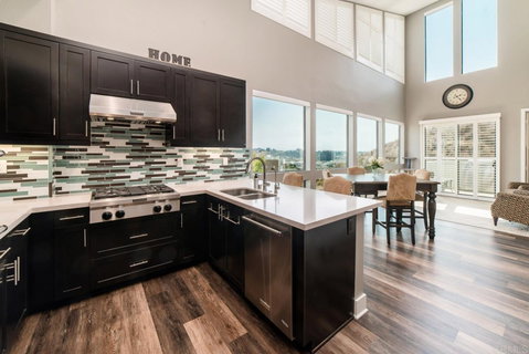 Subject to Cancellation - no fault of seller buyer could not qualify. Striking Civita penthouse condo in the prestigious Lucent community of Mission Valley! Affording exquisite city/mountain views, this luxurious and upgraded end unit condo is a paradigm of contemporary Southern California living. The entryway introduces you to a refined open interior boasting an array of sleek finishes, upgraded wood-grain laminate flooring throughout. Soaring high 2-story ceilings & an abundance of natural light from the large 20ft double stacked windows highlight the luminous open-concept main level w/ private balcony. The modern chef’s kitchen equipped w/ upgraded cabinetry, white quartz counters, custom tile backsplash, SS appliances w/ gas cooking top & breakfast bar flows seamlessly into the spacious dining & adjacent living room. Upstairs find the spacious loft, currently used as a home office or an optional 3rd guest BR w/ balcony & outdoor fireplace. Main-level master suite features large picture windows, high ceilings & spa-quality BA w/ dual sinks, make-up vanity, recessed lighting & sizable walk-in closet. The main-level is complete w/ separate family room, secondary guest BR, an additional full bath, oversized pantry & laundry w/ full sized washer/dryer and cabinets. Private 2-car garage w/ epoxy flooring, workbench and garage cabinets. Civita community offers its own Master Recreational Center with 2-story gym, 2 community pools, private cabanas, outdoor BBQ & firepits. 17 acre park located directly behind w/ community gardens, walking trails, basketball courts, outdoor amphitheater, gourmet food trucks on Tuesday evenings, summer concerts and much more. Centrally located in the heart of Mission Valley w/ quick access to I-8 & I-163.