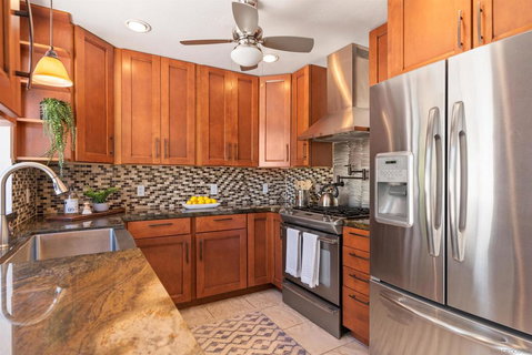 Rarely on the Market a Colony Home that feels like a detached home. Ranch style one level home with attached garage and carport and large yard! Paid for Solar!! Seller spared no expense. Completely remodeled home. Beautiful hard wood floors, newer windows and doors, central air conditioning and heater (5 years old) Quality updated kitchen with many custom upgrades high end granite counter tops, beautiful wood cabinets with quiet close feature. Country sink and garden window. Stainless steel appliances. Gas stove with stainless steel hood, back splash. Custom pot filler. Dining area in kitchen. Spacious master suite with ensuite bathroom. Alcove in hallway for desk area. Both bathrooms remodeled. Large backyard and patio Freshly painted interior! Drought friendly artificial turf installed front yard. Attached garage has built in work bench. Water Heater is 7 years old. Electrical panel upgraded to 200 amp. Light and Bright home. Enjoy the outdoor space too. Walk to nearby community Park, library, schools, shops and restaurants. Easy access to freeways in between 15 and 805. Equipment: Dryer,Garage Door Opener, Washer Sewer: Sewer Connected Topography: LL