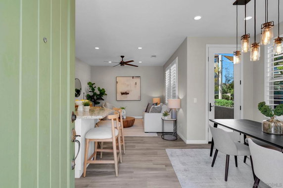 Black Mountain Ranch is a master-planned neighborhood near open space and rolling hills. The area has parks and many hiking trails in the nearby preserve and open land. This district has local shops, a community center, public schools, and clinics. You can find grocery stores, varied restaurants, and other small services close by. The area supports walking and biking with many paved paths, sidewalks, and trailheads. Bus lines run through the district, and drivers use nearby freeways for regional trips. The district keeps a calm, quiet feel and offers easy access to outdoor play and daily needs.