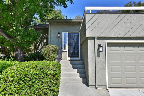 Only unit in the complex with 3 bedrooms, a 2 car garage and 2 full bathrooms! This townhome style condo features almost 1400 square feet of living with multiple balconies, and a private backyard. Top floor consists of a grand living area with vaulted ceilings, kitchen with new, refaced white cabinets and 2 patios. The large, front patio is a great spot for Summer BBQs with friends & fam or a late night around the fire with your favorite beverage. 2nd patio is a perfect breakfast nook for your morning coffee. The upstairs boasts a nice bedroom & bathroom perfect for guests On ground floor, the large main bedroom has a walk-in closet & access to a large backyard w/ a low maintenance artificial lawn. The 2nd bedroom is separated by an In-unit laundry for convenience. Fresh interior paint, new double paned doors and windows throughout that allow in an abundance of sunlight. Central AC/Heat. Secluded & quiet complex. Convenient access to shops, restaurants, Hwy 87, 85, & 280. Must see!