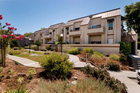 This stunning 2 bedroom, 2 bath top floor condo has been completely remodeled. Lovely kitchen offers Quartz counters, tile back splash, under cabinet lighting, glass accent cupboards, built-in pantry and stainless steel appliances. Light and bright living room with vaulted ceiling, wood burning fireplace and sliding door that opens to a balcony overlooking common area landscaping. Beautiful wood laminate floors, crown molding and baseboards throughout. Spacious master suite with expansive closet and private bath with Corian counter, shower over tub and unique raised bowl sink. Guest bathroom has Quartz counters, large shower and laundry area with stackable washer and dryer. Extra storage in finished one car garage, plus additional assigned parking space in complex. Conveniently located in a desirable Cambrian community near highly rated Campbell Union schools, Branham Park, shopping and freeways.