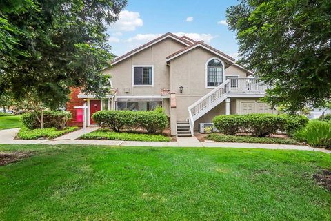 Welcome to this turn-key townhouse facing the green outdoor area, offering tranquility & peace. Nestled in the vibrant Silver Creek/Evergreen neighborhood. Step inside to the living room with high ceilings bathed in natural light, creating an inviting atmosphere. The main level features an open-concept layout, with the kitchen/living /dining. From the stylish kitchen adorned with quartz countertops, stainless steel appliances & new interior paint throughout every detail exudes sophistication and comfort. The main level features a bedroom & full bathroom, great for long term guests. Outside, a private patio, offering a great spot for alfresco dining or morning coffee amidst tranquil surroundings. Upstairs, you'll find two bedrooms along with another bathroom offering ample space for relaxation and rejuvenation. The primary suite boasts high ceiling, an ensuite bath, providing a private sanctuary to unwind after a long day. The 2 car attached garage and no through street creates an ideal location providing ample street parking. Excellent Schools, with a low Monthly HOA $320 with access to pool/play area. Near Starbucks, CVS, Walmart, Evergreen Valley College. Easy access to 101, Montgomery Hill Park, Falls Creek Park, Evergreen Parks.