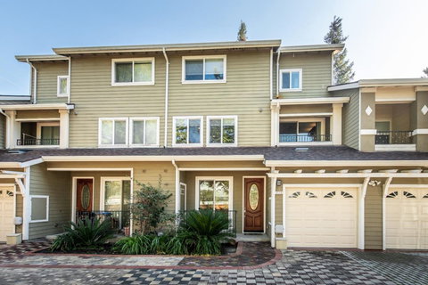 Sweet, like new move in ready and updated townhome in gated community located in close proximity to 87 & 85 freeways, VTA, downtown San Jose, Campbell and Willow Glen. This bright and inviting home with 9 foot ceilings has brand new Bamboo hardwood floors, all new black stainless Kitchenaid appliances including 5 burner gas stove/convection oven, french style refrigerator, dishwasher and microwave, built in wine rack, beautifully refinished cabinets with specialty hardware. Gorgeous complete bathroom remodel with rainshower, bench seat, specialty lighting with built in fan and speaker on remote control, blackout shades in bedroom & living room, walk in closets, recessed lighting, laundry closet with additional storage, newer water heater and timer controlled recirculation pump. Barbeque in your cozy backyard, tinker in the additional 12x12 workshop space in the tandem 2 car garage. Too many details to list, must see this one!