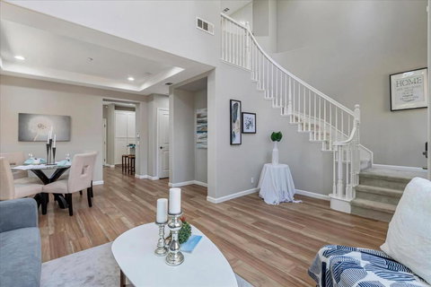 Gorgeous Move-in ready End Unit 2 Story TownHome in BellaVillagio Community!. Bright and spacious living room with a High Ceiling and lots of natural light. New Interior washable Paint throughout the home. Hardwood Flooring on the first floor. Recessed lighting all over the house. Modern Open Kitchen with Quartz Counters, Breakfast Bar, Extra Storage and Gas Stove. Cozy Family Room. Separate Formal Dining Room. Upstairs includes flex space on the landing, perfect for Work-From-Home. Large Primary Suite in Master Bedroom, Walk-In Closet, Huge Soaking Tub, Separate Shower and Dual Vanities. Separate laundry room. Central AC/Heat. Premium Lot with Huge Patio Perfect For Entertainment and BBQs. Attached 2 Car Garage. LOW HOA with water included! Community Pool, Spa, Clubhouse and Playground. Short Distance to Downtown SJ. Great location, less than 1 mile to the shopping center with Lucky grocery, Bakery and Restaurants, CVS. Access to Hwy 87 and just 3 min to Capitol Caltrain station