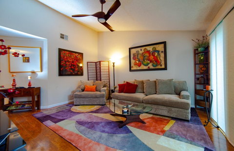Welcome to one of the most upgraded condos you will ever encounter. This 2-bedroom, 2-bath unit has been meticulously kept and has a flare of modern elegance. From the moment you walk in the front door you will be greeted to some of the finest upgrades imaginable, with no expense spared: modern Douglas Hunter window treatments, double-paned windows, engineered hardwood flooring, energy efficient Bosch washer and dryer, tankless water heater, and ultra quiet Artemis ceiling fans. Solid doors have also been installed to lessen noise and maintain tranquility. The kitchen features upgraded cabinets, granite countertops, a composite sink, stainless steel appliances, and shelving designed with usability and efficiency in mind. The bedrooms have custom closets, with the master boasting a well-organized custom shoe closet. Both bathrooms have also been modernly upgraded and both have pressure-assisted low-flow toilets. Open Houses 4.28 & 4.29, 11am-4pm. Offers due 4.30.2018.