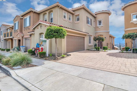 A rare 5 bedroom, 3 full baths + Bonus room with Tuscany architecture. A 3,221 square feet, three level house. End unit with Single Family Residence feel. Panoramic views of the valley from every level at Communication Hill! Windows maximizes views from all three levels. Upper level features the Master suite, Master Bath, two walk-in closets, and a home office or nursery room. Street level main entrance with no steps, features Family Room with fireplace and travertine floor. One bedroom and one full bath. Kitchen welcomes with maple cabinets, granite counter, mosaic backsplash, double oven, refrigerator, microwave, dishwasher. A balcony with panoramic views of the Blossom Valley and twinkling city lights. The lower level has three bedrooms with one full bath plus a bonus room. A living room or children's play area and laundry room with Washer and Dryer. The walk out enclosed patio / balcony, a separate veranda with sweeping views. A 2-car side-by-side garage and ample street parking for guests. Community has multiple walking trails which are easily accessible from this home. Including San Jose’s landmark Grand Stairs. Whole house has three stage water filter system. HOA fees includes : Roof, Exterior, Patios & common areas.