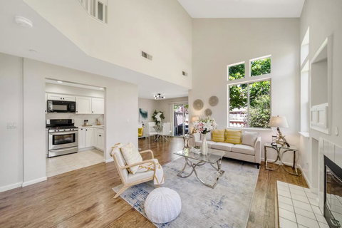 Incredible central location in the heart of the Silicon Valley! Amazing opportunity to own this corner unit fully remodeled townhome with a backyard which opens to the LARGE GARDEN_GREEN BELT. Soaring ceilings w/tons of natural light. Ground floor bedroom w/full bath. REMODELED kitchen with brand new cabinets, quartz countertops & backsplash, breakfast nook & stainless steel appliances. Enjoy spacious living room w/cozy fireplace & views of the garden. Large master Suite w/upgraded bathroom w/brand new vanity, counters, sinks & fixtures. Central heating and A/C. Recess lights.New light fixtures thru out.Brand new interior paint.Inside laundry room w/extra storage washer & dryer are included.Laminate flooring.Community Pool/Spa.Short distance to new school at up-coming Agnes Campus (Elem. to High school). Mins away from Rivermark, Guadelupe River Trail, River Oak Plaza & River Mark Village. Easy commute to major High-Tech Cos. Easy freeway accessibility - 880/101/237 & San Thomas Exp.!