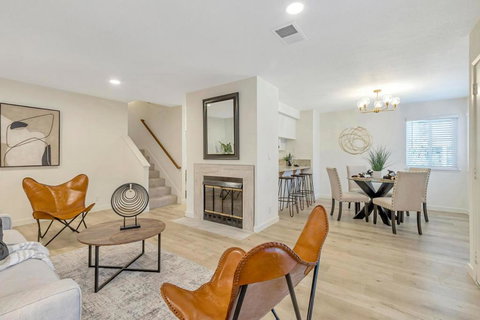 Lovely, Peaceful Updated Cambrian Condominium, 1026 square feet of livable space with 2-bedrooms and 2-bathrooms. Tree shaded, ground floor, corner unit, inviting front door-patio area, ideal for socializing and gardening. A friendly bi-level floor plan has an open, airy, cheerful kitchen breakfast bar-dining area, family room with a wood burning fireplace on the lower level. Ample sized bedrooms, bathrooms and in-unit washer/dryer laundry are located upstairs. Assigned detached enclosed garage units. Common guest parking, green belt areas, pet friendly, fenced community pool and hot tub. Upgraded Dual Pane windows, Granite kitchen counter tops, appliances, primary shower, updated electrical, lighting, mini blinds, flooring and painting throughout. Peaceful neighborhood environment across the street from Branham Park, Branham High School, and sits between Lunardi's and Safeway shopping centers with easy access to 85 freeway Camden exit offering very convenient local living amenities. Union Elementary School District, Campbell High School District. Terrific property central to Cupertino Apple and downtown San Jose Google campuses. Make this your Home Sweet Home!