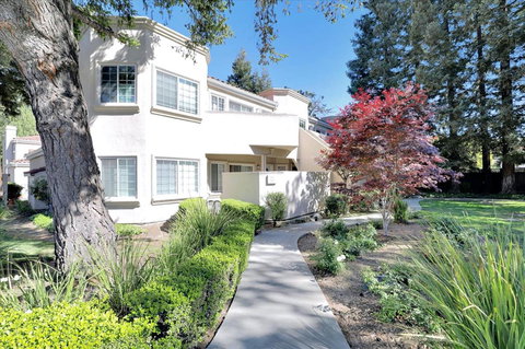 This meticulously updated home is gorgeous and MOVE IN READY! Bright and sunny desirable upstairs end unit overlooking the trees. Just a few minutes walk to Down Town Willow Glen restaurants, shopping and the Los Gatos Creek Trail. This beautiful two-bedroom, two bath home features an open living room - dining room area with a designer chandelier. Vaulted ceilings that flow out onto a private balcony, perfect for entertaining . The kitchen has plenty of cabinet space, granite countertops, electric stove, built-in microwave, stainless appliances. Both bathrooms feature custom vanities w/ granite countertops, designer tile showers, tile floors and designer fixtures throughout. A/C and Heating, Remote control custom shades in the master, surround sound speakers in ceiling. Two spacious bedrooms on each side of the home with two large closets. The second bedroom has a large walk-in closet. Laundry in unit. One car detached garage and one assigned parking space. Great Willow Glen schools.