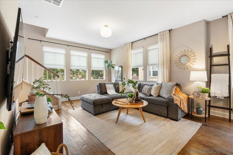 Welcome to Seaglass at Lake San Marcos! This stunning 2-bedroom, 2.5-bath townhome offers 1,125 sq ft of stylish living. Both bedrooms are located upstairs and feature ensuite bathrooms, with the primary suite boasting a generous walk-in closet. The main level showcases beautiful hardwood flooring, neutral paint, upgraded baseboards, and plenty of natural light. The kitchen is a chef’s dream with granite countertops, a farmhouse sink, stainless steel appli...
