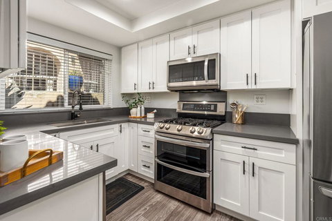 Welcome home! Gorgeous, fully-renovated turn-key 3-bedroom, 2.5 bathroom split-level residence nestled in the sought-after Avocado Gardens community of San Marcos. Step into modernized comfort through your private gated courtyard entry, where vaulted ceilings and an abundance of natural light greet you. Entertain effortlessly in the open living area, complemented by an expanded, well-appointed kitchen boasting modern appliances and plentiful cabinet space. Enjoy seamless indoor-outdoor flow to the community’s sparkling pool, close by for leisurely afternoons or social gatherings. The light & airy layout features a stylish primary bedroom complete with its own balcony, offering a serene retreat for morning coffee or evening relaxation. This home is very well appointed, some of the recent upgrades include double pane windows with noise reduction glazing, energy efficient tankless water heater and a new HVAC system with new insulation in the attic to help keep heating and cooling bills down. The home includes a convenient 1-car garage, 1 dedicated parking spot, and there appears to be plenty of guest parking conveniently adjacent. Avocado Gardens enriches your lifestyle with additional amenities, including a rejuvenating pool & spa with easy access to lush green spaces. The reasonable HOA dues include water, trash, sewer, landscaping and common area maintenance, and nearly everything exterior to the home including the roof, balcony, exterior paint, the courtyard with all the trees, and more. Perfectly situated, this home provides quick commute access via the nearby 78 freeway, along with proximity to top-rated schools, transportation options, and a variety of shopping and dining destinations. Embrace the epitome of Southern California living and experience the charm, comfort, and convenience of Avocado Gardens living!