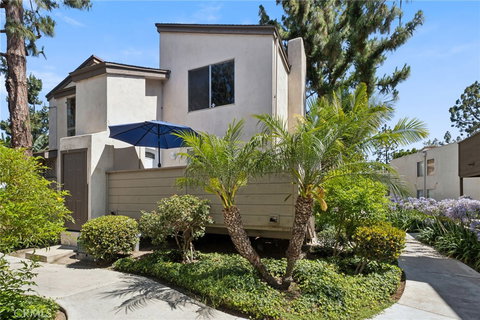 The condominium features an assigned covered parking space with storage cabinets. The Cabrillo Condominiums HOA covers water, trash, and gas. The complex is meticulously maintained and boasts numerous water streams, diverse plant species, and mature trees that offer ample shade and attract various bird species. Nearby Cabrillo Park offers extensive green space, a baseball field, a basketball court, and an outdoor fitness court. Mabury Park, a tranquil area with winding paths under mature pine trees, is perfect for leisurely walks and pet strolls. This property falls within the Tustin School District boundaries; buyers should verify this information independently.