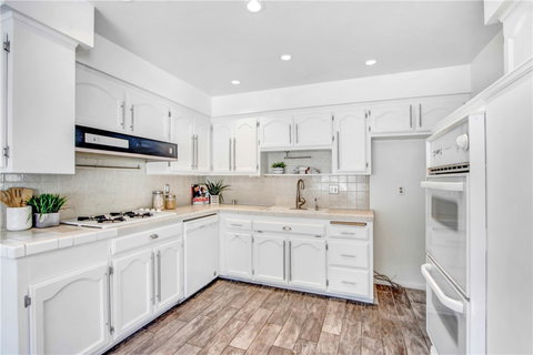 Light, bright and inviting, this three-bedroom, two-bath floorplan is truly unique! Located in the charming and tranquil Regency Villas community, this home is one of ONLY 4 that are end units that share a single common wall. Wrapped in a very well-maintained lawn and landscape the home opens to a stone entry way and sunken family room with a beautiful stone fireplace. Perfect for hosting, the private enclosed patio adjourns the family room and dining area, and the kitchen features a dual oven configuration with all gas appliances! Just blocks away from the 5 and 55 Freeways, the home is conveniently located for shopping and is a part of the award-winning Tustin Unified School District. While the home features its own connections for a stackable washer/dryer system, there is also a laundry facility on site. Community amenities include access to the pool, shuffleboard and the clubhouse, as well as trash, water and sewer. This home is perfect for raising a family and has plenty of opportunity to renovate and make it your own.