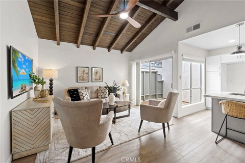 Welcome to this beautifully remodeled and redesigned townhouse in the best area of Santa Ana. Craftsman's style with gorgeous high beam ceilings and attached full sized 2 car garage, washer and dryer and Halo water filtration system. This home offers an open concept living room and designer kitchen with center island, breakfast bar, stainless steel large sink, brand new soft close cabinets, pendant lights, breakfast bar, and all new stainless steel ap...