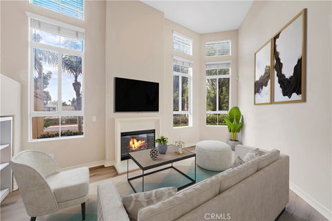 HIGHLY DESIRABLE Vantage townhome located in the South Coast Metro area! This NEWLY REMODELED and REFRESHED 3 bedroom, 2.5 bath home provides a gourmet kitchen with newly installed sparkling white quartz countertops, Samsung smart refrigerator, 5 burner gas range/oven, microwave, dishwasher, and designer Blanco kitchen sink. Beautiful new modern luxury vinyl plank flooring and carpet throughout. Light and bright kitchen, dining room and family room with high cathedral ceilings and spacious floor plan that lead to a convenient outdoor patio make it perfect for entertaining. Large master bedroom with new carpet, generous size walk-in closet, relaxing soaking tub with separate shower, dual sinks and new LVP wood-like flooring. New epoxy floor attached 2 car garage with washer/dryer and ample storage space. Community amenities include a gated entry, resort style swimming pool and spa. HOA pays for water and trash disposal. Ample parking for guests and homeowners. Located in the heart of Orange County, minutes to