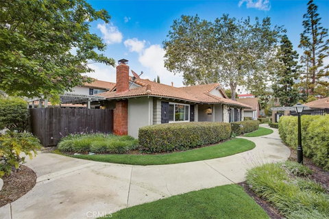 Live your best life at The Main Attraction in this gorgeous end unit! Breeze through the quaint, Dutch door entry to gaze upon a living room adorned with crown molding and bathed in natural light. Gather around the fireplace in the living room. The kitchen offers tons of cabinet space for all of your culinary tools, counter seating, recessed lighting, and flows seamlessly into the dining area and out to the private patio. The primary bedroom features a walk-in closet, plus wall closet. The secondary bedrooms are of generous size and share the hall bathroom. The attached garage has direct access, making parking a breeze and providing extra storage space. The Main Attraction is a small secluded gated community that is centrally located, well maintained and offers its residents a sparkling pool, spa and outdoor BBQ area. Visitor parking is available. Close to the 55, 405 and 73, making commuting easy and getting you to world-class beaches in less than 20 minutes. Surrounded by cafes, restaurants, boutiques, grocery stores and entertainment venues. To see it is to love it!