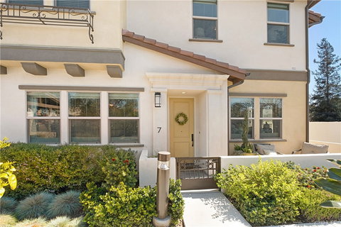 Exquisitely located within a private, gated community in Orange County stands this 3 Bedroom/ 3 Bathroom home built in 2017. This rare, end-unit two-story home is endowed with high quality upgrades, refined amenities, and a large & open floor plan that spans 1,910 square feet of living space. Stroll past a beautiful garden right outside your front door and you'll notice the upgraded pavers in your enclosed, wrap-around patio. Refresh your eyes upon entry by the high ceilings accentuated by crown moulding and anchored by hardwood floors throughout the unit which are capped with a sleek, base moulding in the first level. The many large dual paned windows assisted by the dining room french doors encourage plenty of natural California sunlight and are all dressed with premium window coverings. Perfect your favorite meals in your chef-inspired kitchen equipped with upgraded appliances, shaker cabinets, tile back splash, undermount sink and faucet, and abundant quartz countertop space including a stand alone island with a breakfast nook. Entertain your guests in your dining area that opens to the kitchen and living room or transition upstairs to the loft which was originally a builder 4th bedroom option. The second level also features 3 bedrooms, 2 bathrooms, and laundry room. Large master suite includes a cozy sitting nook, walk-in closets with custom closet systems, and an ensuite bathroom with a glass enclosed shower, large soaking tub, private toilet enclosure, and dual vanity sinks with stone countertops. Additional amenities include epoxy flooring in the garage along with plenty of storage space including overhead storage, and an upgraded electronic vehicle charging station, paid for solar panels, and custom light fixtures in every room. Thoughtfully placed within the community's privacy fencing include additional amenities such as the bocce ball area, fire pit, playground area, picnic area, and community garden. Ideally located within close proximity to plenty of restaurants, shops, large grocery stores, parks, golf courses, and minutes to Santa Ana's Downtown, Kaiser Permanente Hospital and South Coast Plaza. Convenient access to major freeways including the 22, 405, 5, & 55 and less than 20 minutes from the beach/ Newport Pier. VIRTUAL TOUR & VIDEO Links are available so please look for the icons to access because this home is a MUST SEE! This Community is FHA/ VA Approved!!