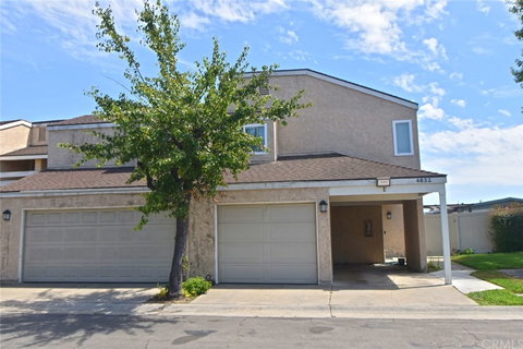 End unit Townhouse with 3 bedrooms and 2.5 baths w/the largest back yard in community- Open Floor Plan and located in a nice Neighborhood- Crown molding thru-out the house- Tile floor Kitchen with Quartz countertop- Laminated floor in all bedrooms, living room and dining area- Recessed lighting- Big master suite w/walking closet, and vaulted ceiling- All three baths recently remolding with tiles and having windows , more bright- Home shows Open, Bright, & Airy w/ lots of windows- Newer dual pane windows- New Air Conditioning, Heater and Water Heater- Community gated Pool, Spa and Club House- Washer Dryer hood up- 2 Car Attached garages plus can park 1 more car with parking permit-Plenty parking for Guests can park up to 96 hours- Closed to Markets, Restaurant, and easy freeway access.