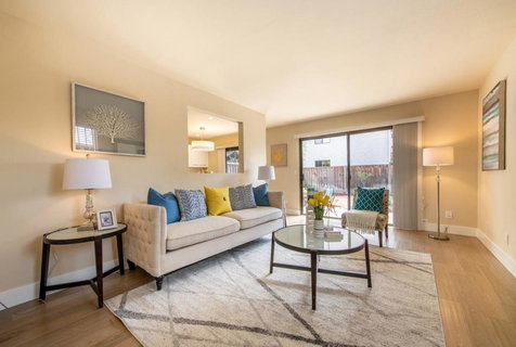 Spectacular end unit provides highly desired ambient light throughout this home. Recently, beautifully remodeled with a contemporary kitchen featuring Bosch stainless steel appliances, recessed lighting, custom cabinets w/ pulls, and exceptional floors that take you through a dual pane sliding door to a serene, private backyard patio among beautiful landscaping for outdoor entertainment. Master bedroom features dual plane sliding doors leading you to a private balcony. Spacious, attached two-car garage and separate laundry room. Within steps to the community pool, perfect for entertaining. Located in a quiet, private community and yet just 11 minutes to the Apple Campus, centrally located with easy access to major freeways/expressways.