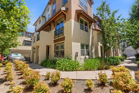 This stunning bright end-unit townhouse located in the heart of Santa Clara is truly a rare find! This beautiful home features three generously sized bedrooms, each with its own full bathroom and walk-in closet. One bedroom is conveniently situated on the ground floor, while the other two are on opposite ends of the top floor for maximum privacy. The top floor also includes a laundry room, extra study desk and storage, adding to the convenience. The home is equipped with modern amenities such as a tankless water heater, recirculating pump, water softener and pre-wired for additional light fixtures or ceiling fans addition. The garage is also pre-wired for an electric car charger, ensuring you're ready for the future. The gourmet kitchen boasts a large island, ample cabinet space, and a walk-in pantry, perfect for all your culinary needs. Tucked away in the back, there are guest parking spots right outside this unit. The community provides playgrounds, BBQ pits, a pool, and a hot tub. Just steps away from the 52-acre Central Park with athletic courts, pools, and picnic areas. Conveniently situated close to restaurants, major tech companies and easily accessible via San Tomas Expressway and freeways, this rare home truly combines luxury living with unmatched convenience.