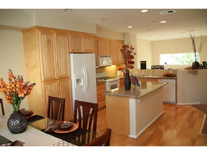 Executive two-bedroom Rivermark townhouse, a few steps from the Live Oak Park, School, Library and Rivermark Plaza. The home is guarded by trees, and, inside, large windows and high ceilings create open living spaces. Beautiful hardwood floors, new carpet and paint! Whole-house water softener and alarm system. Ready to move in! Located within the boundaries of Don Callejon School (K-8). HOA $325.