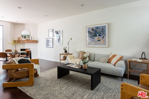 Stunning Santa Monica townhouse. The spacious and natural light filled split-level floor plan offers large high ceiling rooms. The open dining room/ kitchen features a new fireplace and enclosed patio. The gourmet kitchen has custom cabinets, quartz countertops, stainless steel appliances, wine fridge and garden window overlooking the patio. A newly finished powder room is conveniently located on the entry level floor. Both bedrooms have en suite remodeled bathrooms. The large primary bedroom features high ceilings, walk-in closet and en suite loft/office opening onto an expansive roof deck. All new interior doors, sliding doors, blinds and wood shutters. Full size indoor laundry, central HVAC, 2 car side-by-side and bonus room in the basement. You will be walking distance to Erewhon, Douglas Park and Milo and Olive and a stones throw from Trader Joe's and Whole Foods.