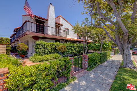 Rare to find, this Santa Monica, tree lined, college street town home offers plenty of space to live, work and play. Two en-suite bedrooms upstairs and one bedroom (currently being used as an office) downstairs which also has its own bathroom. All of the bedrooms open to patios and the direct access, private 2 car EXTRA large garage make coming and going that much more simple. This well laid out home offers a gas burning fireplace in the living room, wine fridge in the kitchen and upstairs laundry area making this unit one that you would certainly want to call home. Easy access to parks, restaurants and the freeway.