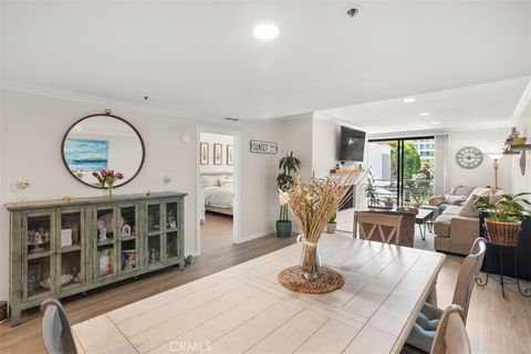 FALL IN LOVE with Santa Monica Beach Living. This stunning 2 Bed / 2 Bath / 1305 sqft condo has been thoughtfully renovated from top to bottom and offers gorgeous wood floors throughout, abundant natural light and sophisticated functional design. A fully remodeled chef's kitchen is adorned with luxury stainless steel appliances, custom cabinetry, tasteful tile backsplash, stone countertops and a delightful breakfast nook. This well designed floor plan ensures seamless flow between the kitchen, dining area and formal living room that also features a cozy fireplace and direct access to a large private balcony. The primary suite boasts an expansive walk-in closet, incredible light, and an elegant en suite bathroom complete with a dual sink vanity, and oversized shower highlighting high-end tile work. The generous second bedroom is versatile, serving as a guest bedroom or a convenient office, and shares a full hallway bathroom with stacked laundry facilities conveniently tucked away inside. This unit is located in the desirable Sea Colony II community, and includes a pool, spa, fitness room, community room, secure designated parking, separate storage room & secure controlled access, all while being across the street from miles of sandy beaches along the picturesque Santa Monica Bay. Welcome Home.