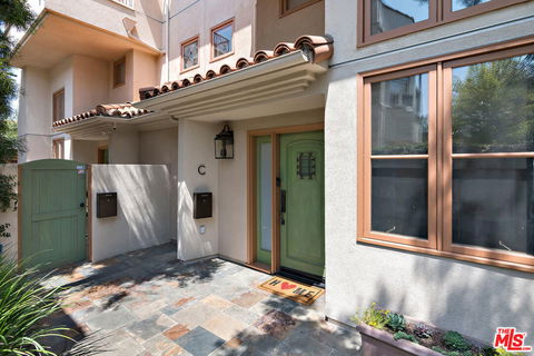 Live and work in Santa Monica, 2 buildings south of Montana Ave. Enjoy this fully remodeled modern luxury townhome in a super quiet 4-unit complex. The interior is an open modern space complimented by high ceilings and exquisitely updated finishes. You would enter through a secure garage with 2 side by side parking spaces. The access is open to the front door, no elevators. The main level has a living room, dining area, open private patio, kitchen with full-size laundry, food pantry and modern powder bath. The second level has an open loft overlooking the living room which can be used as a third bedroom, home office, or gym. This level has a larger covered outdoor balcony with ocean breezes. The primary bedroom is en-suite with walk-in closets, third small balcony, and treetop views. The second bedroom has large closets and an en-suite bathroom with a tub/shower. A great indoor/outdoor retreat w/multiple fireplaces, balconies, privacy.
