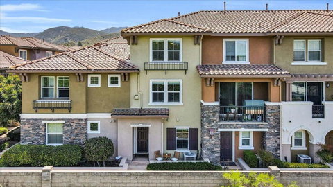 Experience this stunning 3-bedroom, 3.5-bathroom townhome in the highly sought-after Treviso Santee community. This rare Plan 4 unit is perfectly located at the back of the complex, offering exceptional privacy. The bright, open interior has been beautifully updated and features a modern kitchen with stainless steel appliances and elegant laminate flooring. Designed for convenience, the layout includes a first-floor bedroom with its own full bathroom. Upstairs, each bedroom has its own private full bath. The primary bedroom boasts spacious his-and-her walk-in closets and a recently renovated bathroom. Additional highlights include a whole house fan, a 2-car garage, and an extra parking spot. Don’t miss the opportunity to own this move-in ready, modern, and show-stopping home!