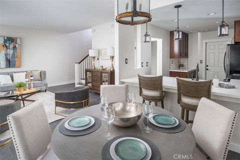 Gorgeous, Updated Townhome with attached garage and beautiful yard with covered patio and artificial turf! Sleek flooring, high ceilings, and a stacked stone fireplace welcome you to this 2 bedroom home. The kitchen has been tastefully upgraded with wood cabinets, quartz counters, and stainless steel appliances. The staircase makes such a statement with wood steps and a white banister. Both bathrooms have been updated and are stunning. Crisp and clean car...
