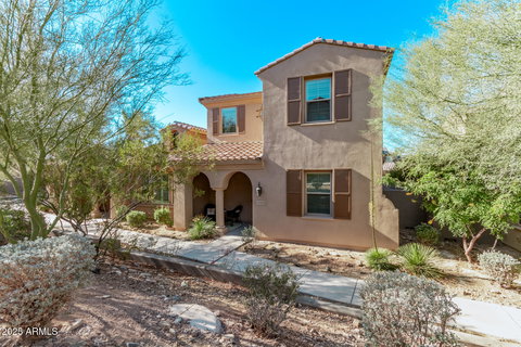 Located in Villas Altozano Condominium, this wonderful two-story townhome boasts modern features throughout! Upon arrival, an inviting front porch welcomes you. Spacious open floor plan with wood flooring is filled with lots of natural light. Gourmet kitchen provides recessed & pendant lighting, tile backsplash, a pantry, abundant white cabinetry adorned with crown moulding, a prep island with a breakfast bar, granite counters, and top-of-the-line stainless steel appliances such as a double wall oven, wine cooler & gas cooktop. A cozy loft with built in desk. Primary suite offers plush carpet, an ensuite with two vanities, soaker tub and a walk-in closet. Unwind in the serene backyard. All within a 5-minute walk are: Sophia's Kitchen, Bashas, The Vig, CVS, Gateway hiking trails, easy access to 101, 5-minute drive to DC Ranch shopping area, WestWorld and only 2 miles to TPC Scottsdale where the waste management tournament is held.