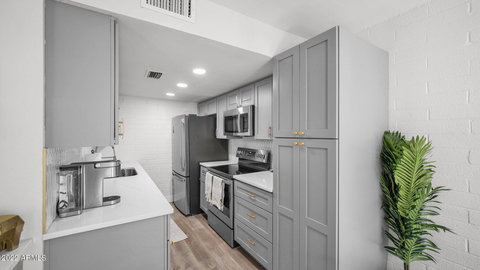 THIS IS YOUR CHANCE TO OWN THIS NEWLY REMODELED AND BEAUTIFUL 2 STORY UNIT IN A SUPER CONVENIENT LOCATION IN SCOTTSDALE. GORGEOUS KITCHEN HAS NEW SOFT CLOSE CABINETS WITH BRUSHED BRASS PULLS, QUARTZ COUNTERS, TILED BACKSPLASH AND NEW SS APPLIANCES. NEW PAINT, NEW PLUMBING FIXTURES,. BATHS HAVE BEEN METICULOUSLY RE-DONE TO INCLUDE NEW TOILETS & VANITIES, TILED SHOWER SURROUND AND UPDATED PLUMBING. LUXURY VINYL FLOORING AND NEW BASEBOARDS THROUGHOUT. NEW LIGHTING, WIRING, NEW BREAKERS, AND AN UPDATED ELECTRICAL PANEL. DUAL PANE LOW E WINDOWS AND SLIDER TOO! FULL SIZE STACKABLE WASHER/DRYER IN THE UNIT. PRIVATE, GATED FRONT PATIO WITH SYNTHETIC GRASS OFFERS A GREAT PLACE TO ENJOY THE OUTSIDE. MINUTES TO OLD TOWN, SCOTTSDALE STADIUM, ASU AND THE FREEWAY.