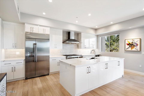 LOCATION LOCATION LOCATION now at an UNPARALLELED VALUE! Experience a level of sophistication and convenience rarely found in luxury urban living. Welcome to this exceptional, fully furnished residence at SOHO Scottsdale, where every detail has been curated for the most discerning buyer. Now offered at an extraordinary new price, this is a prime opportunity for immediate, elevated ownership. Spanning over 2,000 interior square feet, this residence feels expansive, thanks to its soaring ceilings and generous, intelligently designed living spaces. This highly desirable layout includes TWO private en-suite bedrooms, a flexible third room perfect for a private study or den, and a chic guest powder room. The kitchen is a masterpiece of form and function, optimized for both grand entertaining and daily efficiency. It features pristine Quartz countertops, sleek custom cabinetry, and a premium GE Monogram Statement appliance suite. Rare for urban condominiums, the residence extends your living space with two private patios.