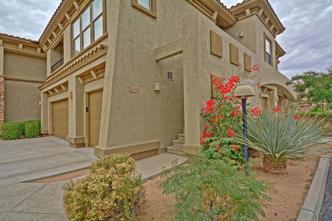 BACK ON MARKET!! Move in ready! Beautifully maintained townhome in The Village at Grayhawk. Upgraded chipped edge tile flooring that blends with the custom paint and carpet. Wood shutters throughout. Ceiling fans. Nicely laid out kitchen with black appliances, upgraded gas range and tile backsplash. Nice sized covered patio. The Village offers 2 community pools and spas, with lovely manicured grounds. Convenient to shopping, dining, hiking, golf, and North Scottsdale special events such as golf tournaments and car auctions. Excellent lock and leave home!