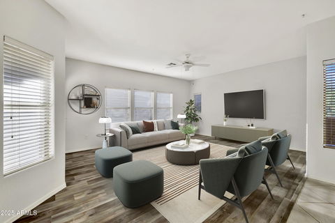 Village at Grayhawk is a well positioned community now and into the future. Future development and prices demonstrate that reasonable and affordable options like this in the area will disappear soon. Nothing at this price and size will be built again in the area. This 2 bed 2 bath has nobody living under it except for garage space and that means privacy and less whine time during wine time. This is a prime area and with all the new development incl the AZ ...