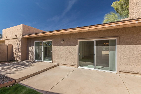 Inside the building, soaring vaulted ceilings create an airy feeling. Each unit also includes a private courtyard for outdoor relaxation. Residents enjoy access to a community pool, perfect for hot Arizona days. Some units might contain high ceilings and private carports that could be converted into garages.
