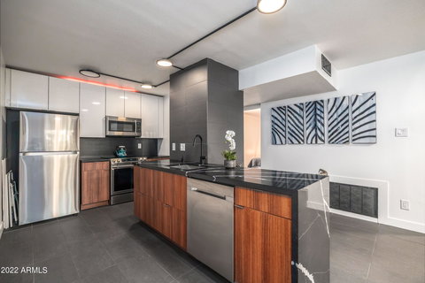 Wow! Dream of living in the heart of Scottsdale's Historic Old Town? Then this updated home is what you have been looking for. Located in easy walking distance to shops, entertainment and restaurants you will love the charm and style of this updated condo. With two bedroom, two beautifully updated bathrooms, a gorgeous kitchen and laundry room. The community boasts beautiful views of Camelback mountain from the community pool where you can enjoy the beautiful AZ weather. This home has everything you want and need. As an added bonus the HOA fees include utilities.