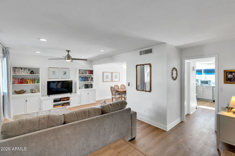 RARE OPPORTUNITY TO OWN A BEAUTIFULLY UPDATED 4-BEDROOM, 2.5-BATH RESIDENCE WITHIN WALKING DISTANCE OF OLD TOWN SCOTTSDALE AND SCOTTSDALE FASHION SQUARE. The home features recently installed tile and LVP flooring throughout, an upgraded powder room, and two upstairs bathrooms fully remodeled with marble vanities and polished nickel fixtures. The kitchen offers both style and functionality with updated cabinetry and quality appliances, including a Bosch dishwasher and LG refrigerator—ideal for everyday living and entertaining.