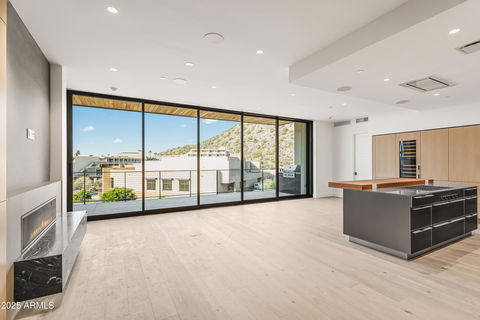 Rare resale at The Ascent at The Phoenician - Premier southwest-facing residence with unobstructed sunset and city-light views. 2,294 sq ft, 2 bedrooms + den, 3 bathrooms. Expansive ceilings and floor-to-ceiling glass create seamless indoor-outdoor living to a private terrace with built-in BBQ. Gourmet kitchen with Bulthaup cabinetry and Wolf appliances. Waterworks fixtures throughout, automated Lutron shades. AV pre-wire with in-ceiling speakers installed in bedrooms, primary bath, den, kitchen & living room. Private gated community with guardhouse, rooftop terrace with 360° views, Mountain Club amenities, and direct access to Camelback Mountain's Cholla Trail. Resort living at its finest next to The Phoenician.