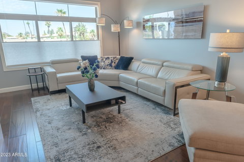 LOCATION, LOCATION, LOCATION!!! Luxury condominium living at its finest in the heart of Scottsdale. BEAUTIFULLY updated 3 bed, 2 bath Sage condominium with Camelback views from every window! Kitchen features premium Dacor appliances w/built-in fridge, under counter lighting, new quartzite countertops & R/O system. Enjoy hand-scraped hardwood floors in common areas and bedrooms. Bathrooms completely updated with new tiled walk-in showers, new glass enclosures, new quartzite countertops, new Kohler LED lit mirors & light fixtures, new toilets & undermount Kohler sinks! Backdoor access to the Arizona Crosscut Canal offers 20+ miles of paved walking and biking trails as well as convenient walking distance to Scottsdale Fashion Square shopping, Harkins Theater, and all the renowned restaurants and nightlife Old Town Scottsdale has to offer. Unit comes with two assigned parking spaces in the gated underground parking garage complete with dedicated vehicle charging station! Spectacular clubhouse offers a private locker in the wine cellar & a recently updated secluded pool area on the canal with two outdoor BBQs. Great place to relax and entertain! Hurry, this one won't last long!