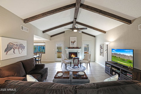 Hurry to this Highly Upgraded Property in the Heart of Scottsdale! Desirable End Unit, North/South Exposure, 2 Master Suites (One with Walk-in Closet), Living Room Vaulted Ceiling with Beautiful Wood Beams, Formal Dining Area, Cozy Fireplace, Atrium, Updated Items Include; Windows & Doors by Renewal by Andersen, Shaker Style Kitchen Cabinets with Granite Countertops & Stainless Steel Appliances, Gorgeous Bathrooms with Sleek Vanities & Quartz Countertops, Tile Surround Showers, Interior & Exterior Paint with Neutral Colors, Interior Doors & Baseboards, Attractive Window Coverings, Skylight, Ceiling Fans, Tile Flooring Throughout, Replaced Electrical Box, Extreme Clean Garage with Refinished Flooring with Custom Built Cabinets for Storage, Huge Relaxing Covered Patio with Patio Sun Shades, Enjoy the Community Pool & Spa, Refrigerator, Washer & Dryer Included! Some of the Furniture is Available for Sale with a Separate Bill of Sale! Fantastic Scottsdale Location, Convenient to Old Town Scottsdale, Spring Training Baseball, Scottsdale Fashion Mall, ASU, Freeway, Parks, Golf, Bike Paths, Restaurants, and Talking Stick Casino! Definitely Add This Property to Your View List!