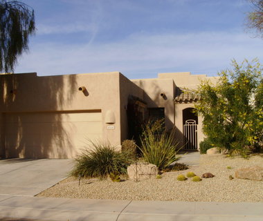 ADORABLE PATIO HOME! ENCHANTING IN EVERY WAY. LIGHT, BRIGHT, AIRY OPEN FLOORPLAN W/ SOARING HIGH CEILINGS & LARGE WINDOWS. IMPECCABLE CONDITION. SPLIT 2 BEDROOM 2 BATH WITH BLEACHED WOOD FLOORING, OFF- WHITE CARPETING. WALLS OF WINDOWS TO 14 FEET. GRANITE COUNTERTOPS IN KITCHEN WITH KITCHEN-AID APPLIANCES. CABINETS AND SINK IN LAUNDRY ROOM. ADDITIONAL SINK IN GARAGE. WATER SOFTENER + BUILT-IN GAS BBQ, TILED WALL FOUNTAIN IN BACKYARD. LARGE PRIVATE PATIO WITH NORTH/SOUTH EXPOSURE. MASTERBATH HAS HIS AND HERS VANITIES, SEPARATE SHOWER, JETTED TUB, & SEPARATE WATER CLOSET.