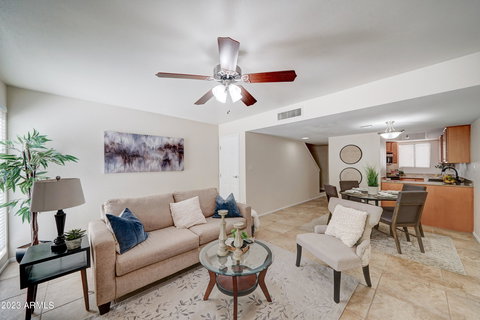 Location, location! Hard to find condo that feels like a home!This stunning 2bed/2.5bath/2 two story condo is located in a desirable Scottsdale area. It is within 10 min proximity to Old down Scottsdale, & Tempe Market place. Great for dining, & shopping! Close freeway access. This is the perfect kiddo condo, starter, or investment property. Unique one car garage, with dual balconies from both bedrooms and nice quiet back patio. Premium location within the community, as it is right next to pool. Home shows light and bright with an abundance of Arcadia doors & windows throughout. Large master bedroom and bathroom with granite counter tops, and dual vanities. Spacious family/dining area, with nicely updated kitchen with neutral tile and carpet throughout. SS appliances & washer/dryer convey